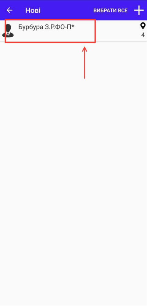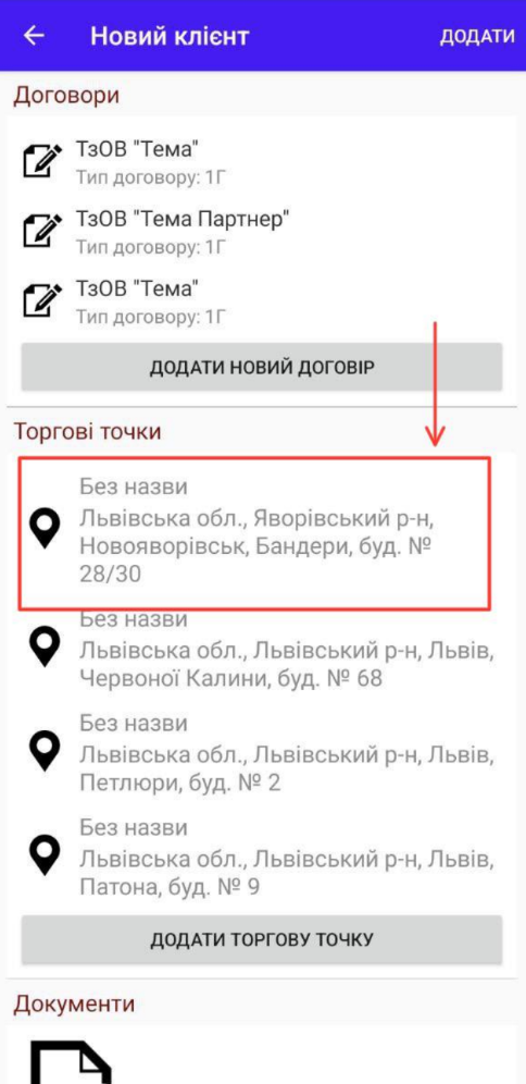 4. Перейти у розділ «Торгові точки» та обрати торгову точку яку потрібно внести в маршрут і натиснути на неї.