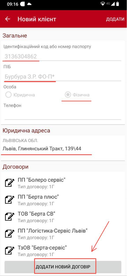 Щоб додати новий договір потрібно натиснути на клавішу «ДОДАТИ НОВИЙ ДОГОВІР»