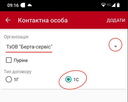 Вибрати організацію по якій потрібно створити новий договір та вибрати тип договору та натиснути клавішу «ДОДАТИ»