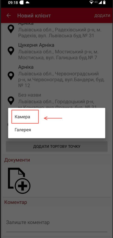 Додати документи можна за допомогою «КАМЕРИ» або «ГАЛЕРЕЇ» телефону. Зробити фото або завантажити вже наявні фото з галереї.