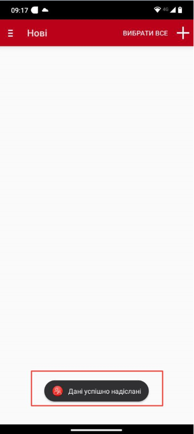 Після надсилання даних очікуємо повідомлення від програми «Дані успішно надіслані»