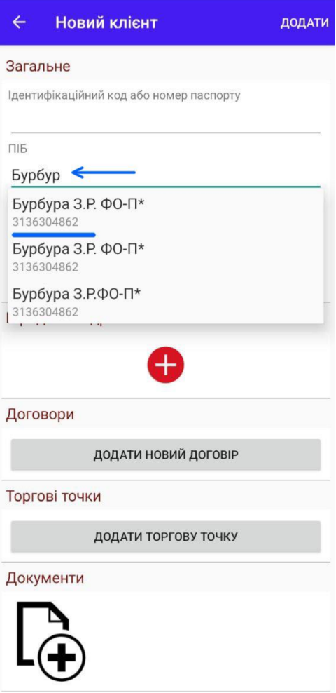 В пошук вводимо дані контрагента «ПІБ» та вибираємо контрагента з переліку.