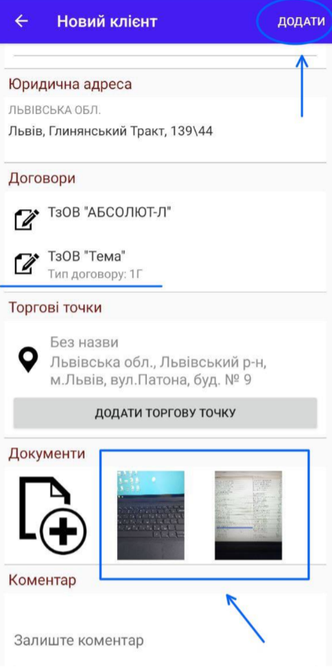 Перевірити чи завантажено фото документів та натиснути клавішу «ДОДАТИ»