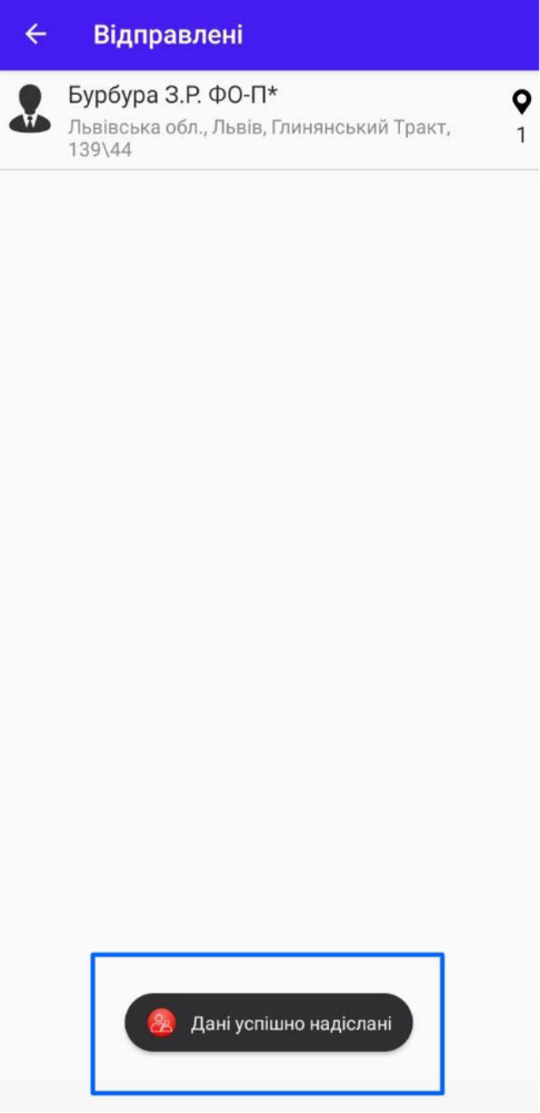 Після надсилання даних очікуємо повідомлення від програми «Дані успішно надіслані»